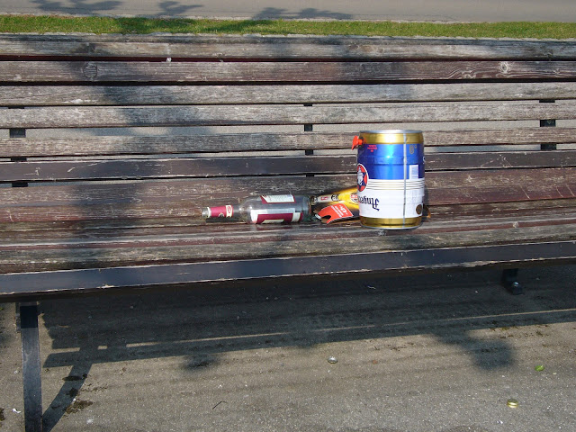 Halbvolle Sekt- und Wodkaflaschen säumten den Weg, dazwischen die "Jugend von heute". Naja, Gläser zum anstoßen haben wir früher auch nicht gebraucht...*lach*
